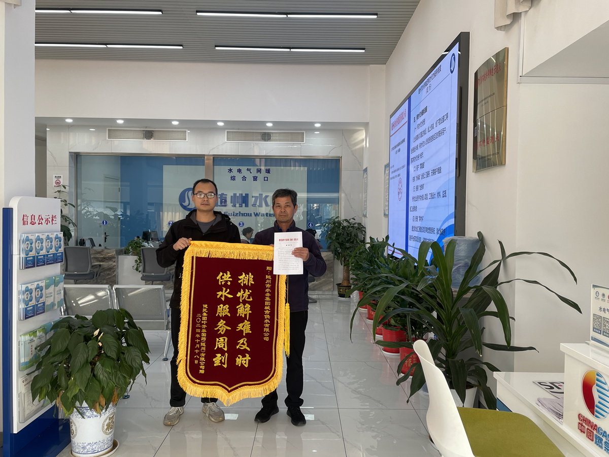 錦旗和感謝信不僅承載的是企業(yè)用戶的感激,更是對隨州水務(wù)為企業(yè)辦實(shí)事、辦好事的信任和鼓勵。群眾利益無小事!隨州水務(wù)將持續(xù)增強(qiáng)主動服務(wù)意識,聚焦企業(yè)用水的“難點(diǎn)、堵點(diǎn)、痛點(diǎn)”問題,強(qiáng)化擔(dān)當(dāng)、主動作為,持續(xù)秉持初心,想群眾之所想,急企業(yè)之所急,以更加飽滿的熱情、更加高效的執(zhí)行力、更加貼心優(yōu)質(zhì)的服務(wù),助力打造一流用水環(huán)境。