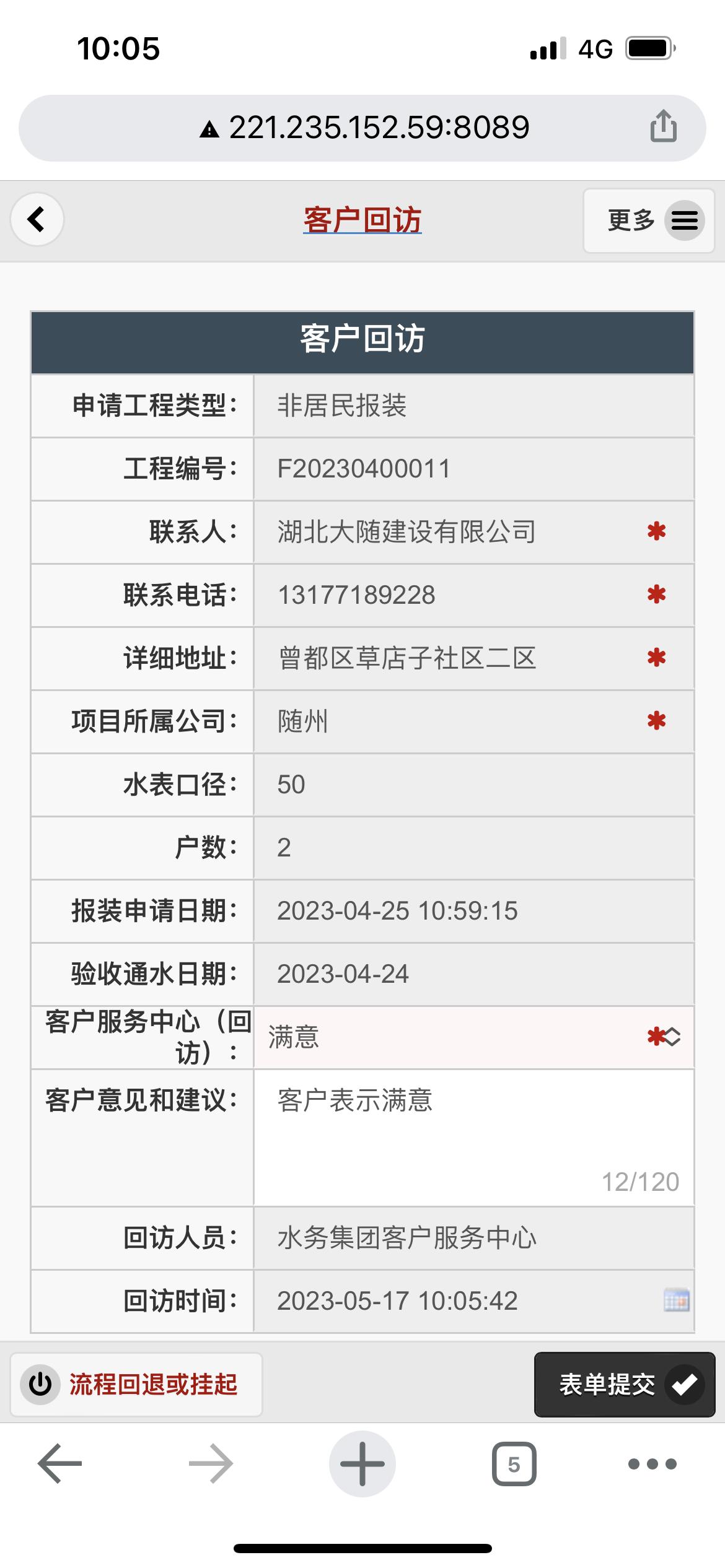二、應(yīng)用案例及實(shí)際操作界面截圖(包含用水報(bào)裝、現(xiàn)場(chǎng)勘查、預(yù)算方案、工程施工、驗(yàn)收通水、客戶回訪等功能)
