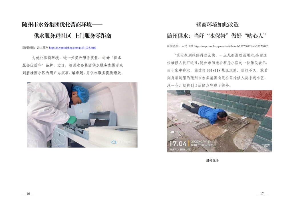 為全面提升供水服務(wù)水平,優(yōu)化供水營商環(huán)境,隨州水務(wù)集團(tuán)推出“水保姆”供水服務(wù)新模式,建立“供水服務(wù)網(wǎng)格員”隊(duì)伍,通過開展清表核查、網(wǎng)格劃分、聯(lián)合社區(qū)共同解決用戶問題等亮點(diǎn)行動(dòng),讓百姓暖心,讓企業(yè)放心。