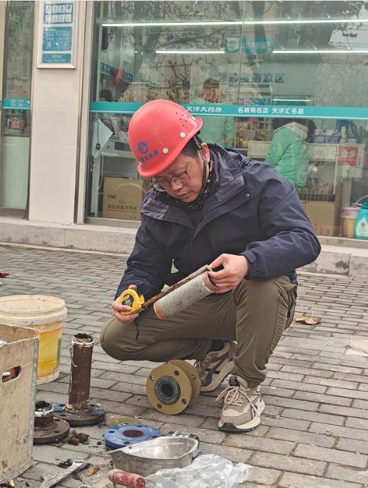 2025年7月,又一嚴(yán)峻考驗(yàn)降臨,交通大道兩水段突發(fā)區(qū)域性停水。故障就是沖鋒號,劉吉再次主動(dòng)請纓,率隊(duì)緊急出動(dòng),戶外溫度直逼40攝氏度。頂著烈日,劉吉帶領(lǐng)隊(duì)員們,沿著疑似管線段進(jìn)行地毯式徒步排查,最終確定故障點(diǎn)位于一處橋梁下方的穿橋主管道。